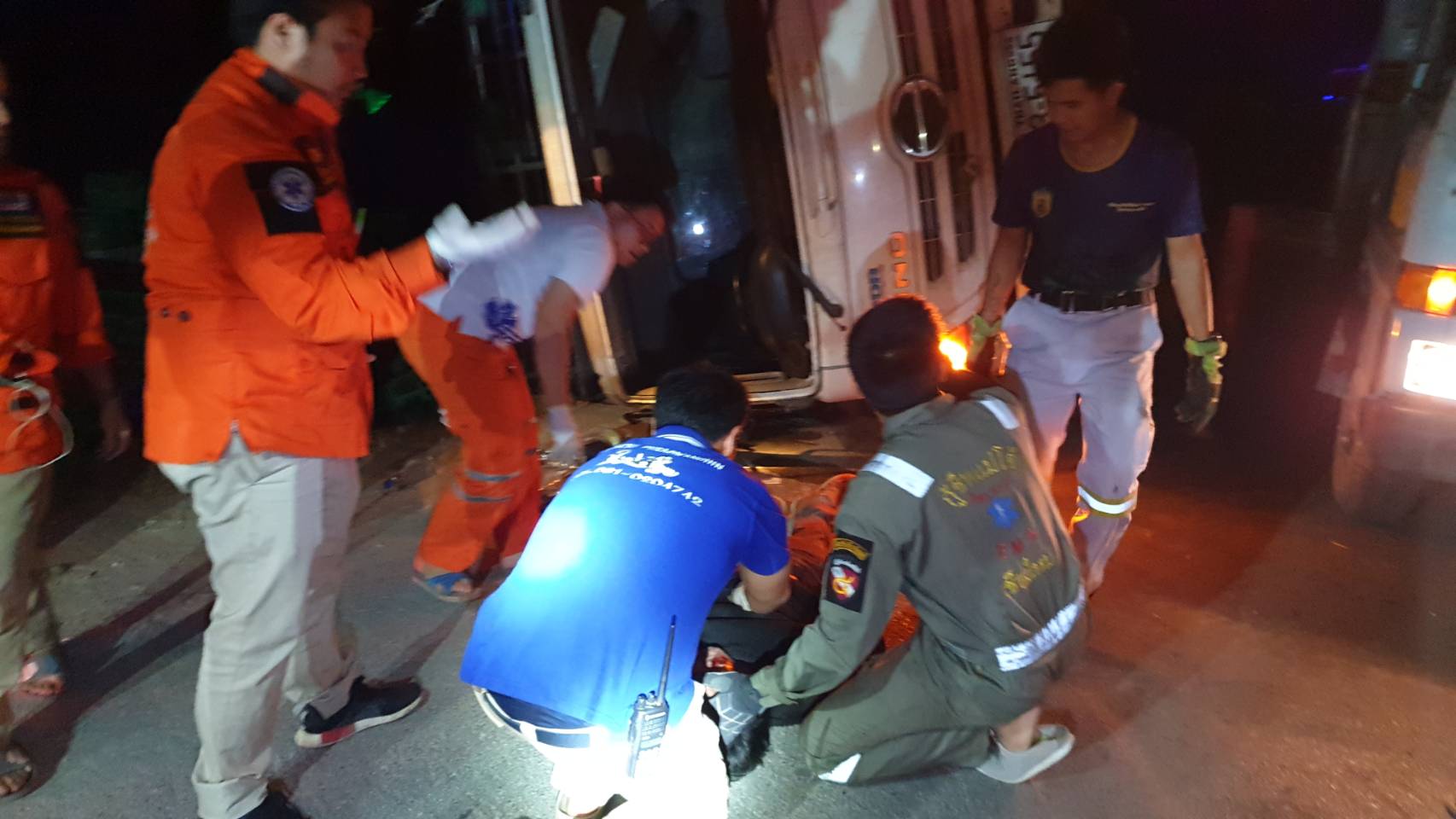 แต่คนงานนั่งมาด้วย 2 คน บาดเจ็บเล็กน้อย ชื่อนายณรงค์ สุดสิริ อายุ 42 ปี ที่อยู่ 1/13 ต.ช้างเผือก อ.เมืองเชียงใหม่ จ.เชียงใหม่ และนายปั่นนิกต้า ลุงส่วย อายุ 23 ปี ที่อยู่ 43/1 ต.หายยา อ.เมืองเชียงใหม่ จ.เชียงใหม่ เจ้าหน้าที่จึงนำตัวผู้ที่ได้รับบาดเจ็บทั้ง 2 รายส่งรักษาตัวที่โรงพยาบาลพร้าวต่อไป ส่วนผู้เสียชีวิตเจ้าหน้าที่ได้นำออกจากรถออกจากรถ เพื่อรอให้เจ้าหน้าที่ตำรวจ สภ.โหล่งขอด แพทย์เวร โรงพยาบาลพร้าว มาชันสูตรพลิกศพ