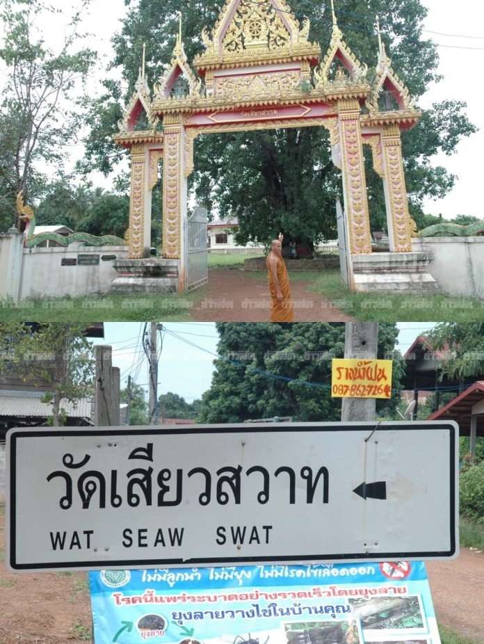มีชาวบ้านกลางเจริญ ต.ต้นผึ้ง อ.พังโคน จ.สกลนคร แจ้งว่า มีวัดในหมู่บ้านชื่อ “วัดเสียวสวาท” ขณะนี้กำลังก่อสร้าง หอระฆัง แม้จะใช้เงินจำนวนไม่มากแต่ก็ยังสร้างไม่แล้วเสร็จ ลูกหลานที่ทำงานต่างจังหวัดรวมทั้งกรุงเทพ ทำบุญผ้าป่ากฐินมาทอดถวาย ไม่เคยได้ถึงแสนบาทสักครั้ง ส่วนใหญ่เมื่อนำซองไปแจก คนที่รับซองมักสงสัยในชื่อว่า เสียวสวาท ทำให้แปลกใจ ใส่ซองทำบุญมารายละ 10 บาท 20 บาทเท่านั้น